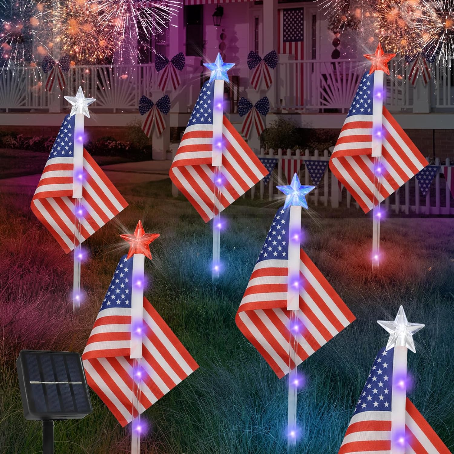 【Auto ON/OFF 】- Auto ON/OFF Solar Lights for Outside Garden Decor,it’ll charge during daytime,light up at night,these charming solar 4th of July lights are perfect for a location without outlet.