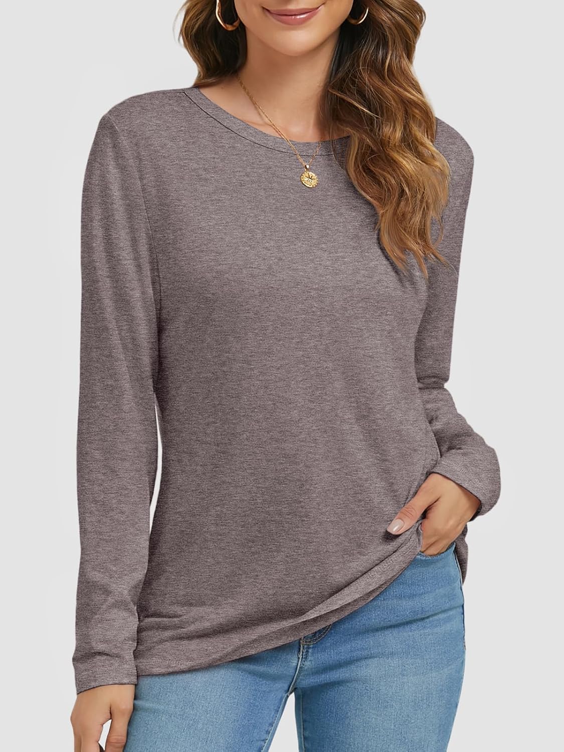 ATHMILE Womens Long Sleeve Round Neck Shirts Basic Tee Casual Top Fall Trendy Tunic Outfits Fitted T Shirts