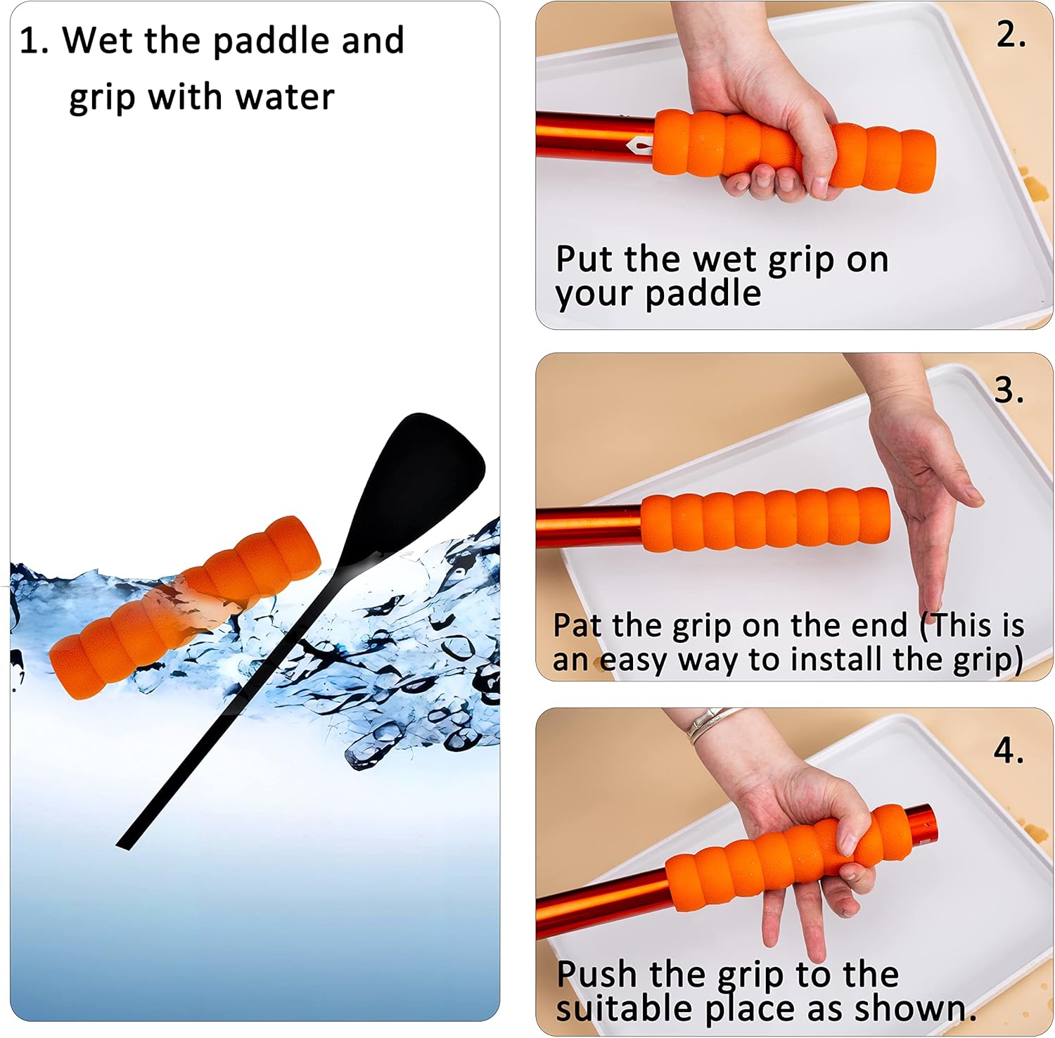 These paddle grips are design to slide onto the shaft of your multi-piece paddle. Once in place,the inner design provide a non-slip grip to help keep the grips in place on your paddle.