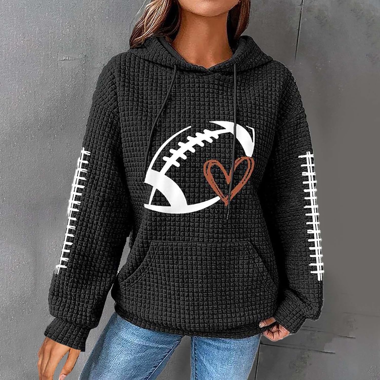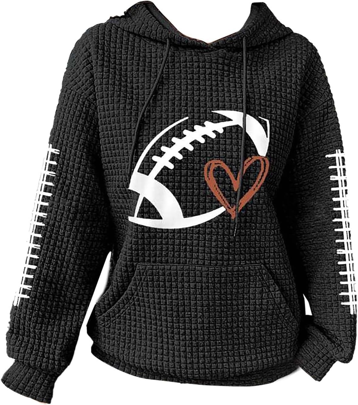 Ogiraw Women Waffle Knit Cute Hoodies Game Day Drawstring Pullover Sweatshirts Trendy Sweaters Comfort Fall Clothes Outfits